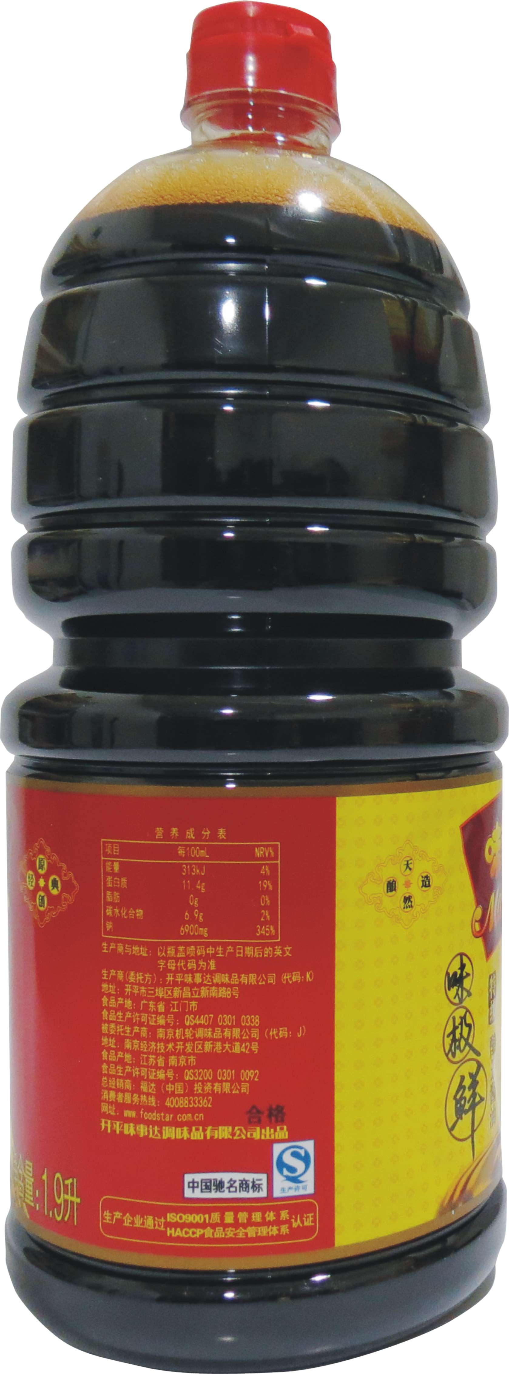 (1)一看工艺,是酿造还是配制酱油。采用传统工艺的高盐稀态酿造酱油风味较好、含盐量较高,采用速酿工艺的低盐固态发酵酱油含盐量较低。