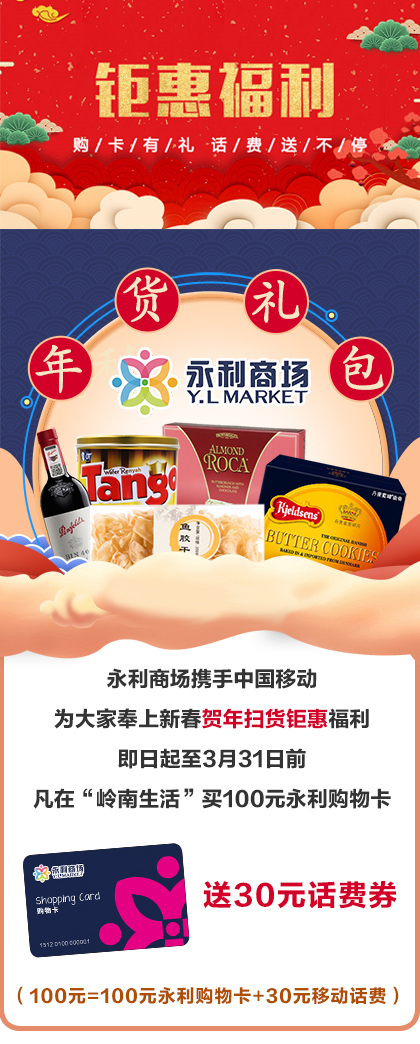 您现在的位置:首页 >> 促销优惠 >> 在岭南生活购买永利购物卡,送30元移动话费