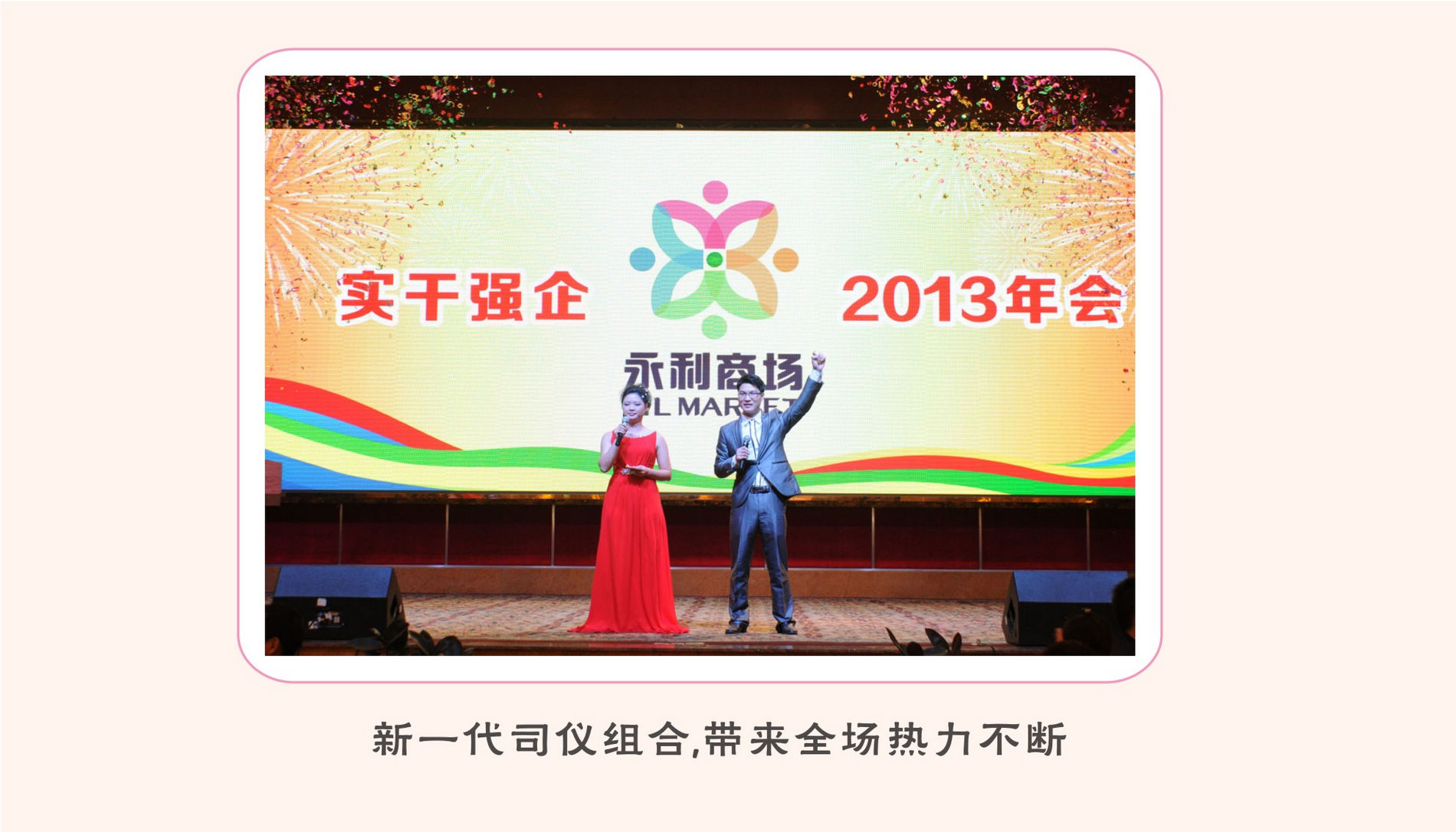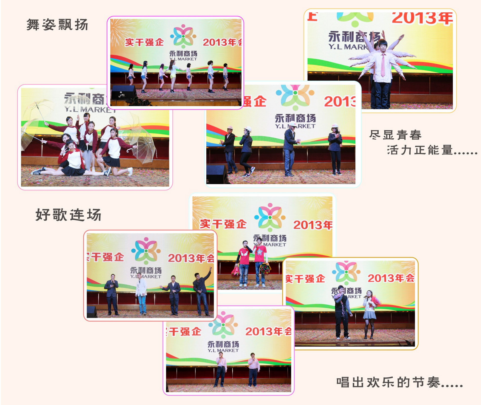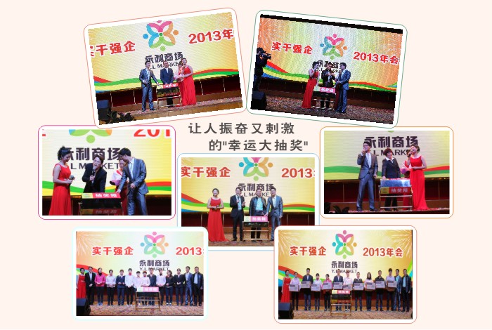 在年会上,全体永利人在欣赏着各门店部门倾情演出的节目同时,欢声笑语地享受着公司精心准备的团年饭,而万众期待的幸运大抽奖更是为年会掀起一波又一波的热浪。下面就让我们共同欣赏全体永利人的辛勤丰硕成果和丰富多彩的年会节目。