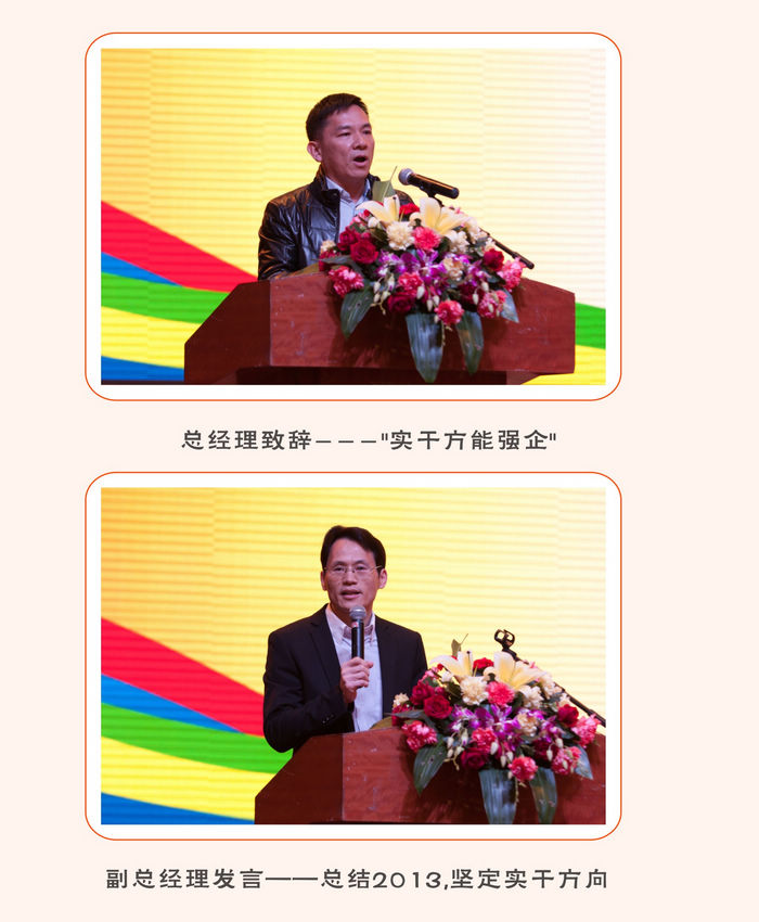 2014年1月9日全体永利人欢聚在江门金凯悦大酒店举行2013年度员工大会。在年度大会上,总经理王亚成围绕年会主题发表了只有实干方能强企的重要讲话,紧接着副总经理谢杰周总结了2013年公司的成功扩展和各门店的创造的优异成绩,同时还明确了2014年实干强企的发展方向。